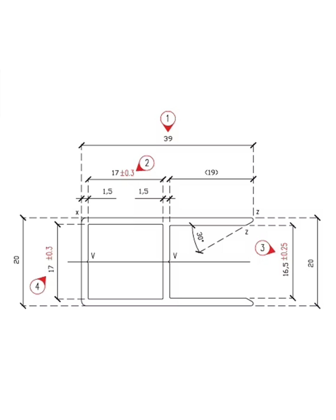 Koker-profiel voor 16mm 20x20 eindprofiel alu 4,5 m